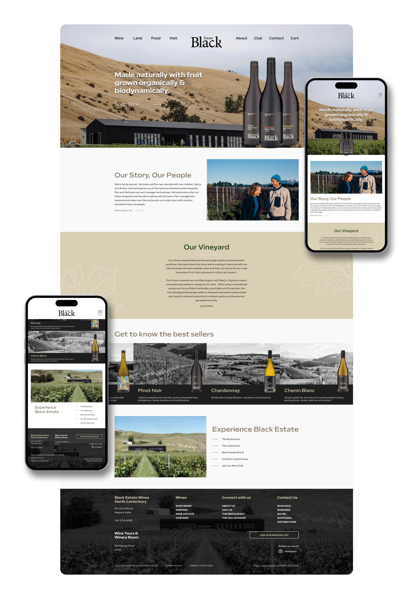Black Estate is a winery located in the North Canterbury region in the South Island of New Zealand. The winery is family-owned and the winery is known for farming on three organic and biodynamic vineyards.